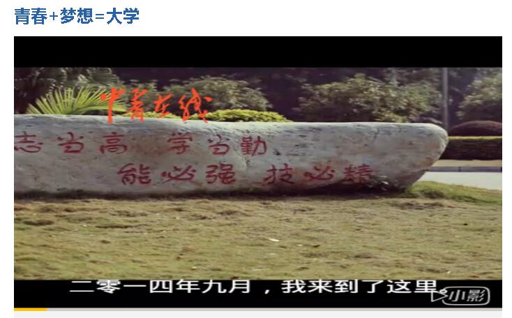 2016年5月30日,中青在线视频频道播出我校学生姚兰婞的视频《青春+梦想=大学》。(新闻截图/唐艳)