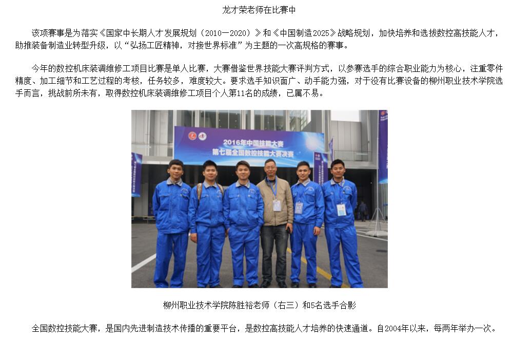 【中国职业技术教育网】柳州职业技术学院选手在第七届全国数控技能大赛决赛中获得好成绩