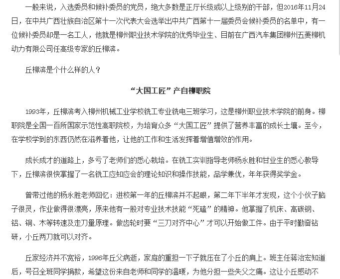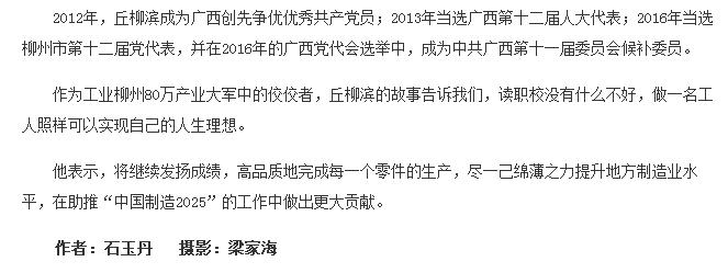 【广西八桂职教网】工人出身的侯补委员--柳职院优秀毕业生丘柳滨