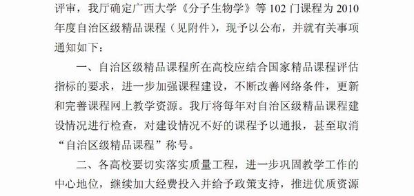 桂教高教[2010]100号文件截图(部分)