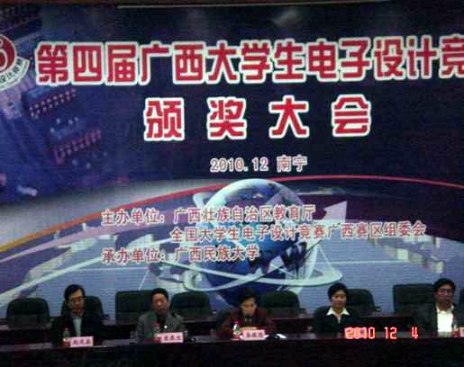 2010年12月4日,第四届广西大学生电子设计竞赛表彰会在广西民族大学科技厅隆重召开,表彰今年大学生电子设计竞赛获奖学生及单位。