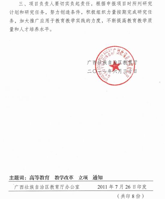 我院2项目获新世纪广西高等教育教学改革工程2011年重大项目立项