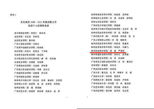 大会还对2008—2011年度后勤工作先进院校和先进个人进行了表彰,我院喜获“自治区高校后勤工作先进院?!比儆钜愀痹撼?、后勤与资产管理处严泽民副处长被评为“广西高校后勤工作先进个人”。(文、图/俞罗明)
