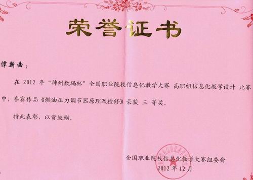 喜讯从贸易与旅游管理系传来:我院两件参赛作品近日在刚刚结束的2012年全国职业院校信息化教学大赛中荣获两个高职组三等奖。