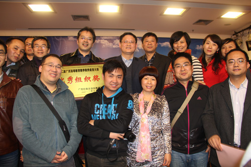 鞠红霞评委(后排右三)和参赛队员与广西教育厅黄宇副厅长(后排右五)合影留念