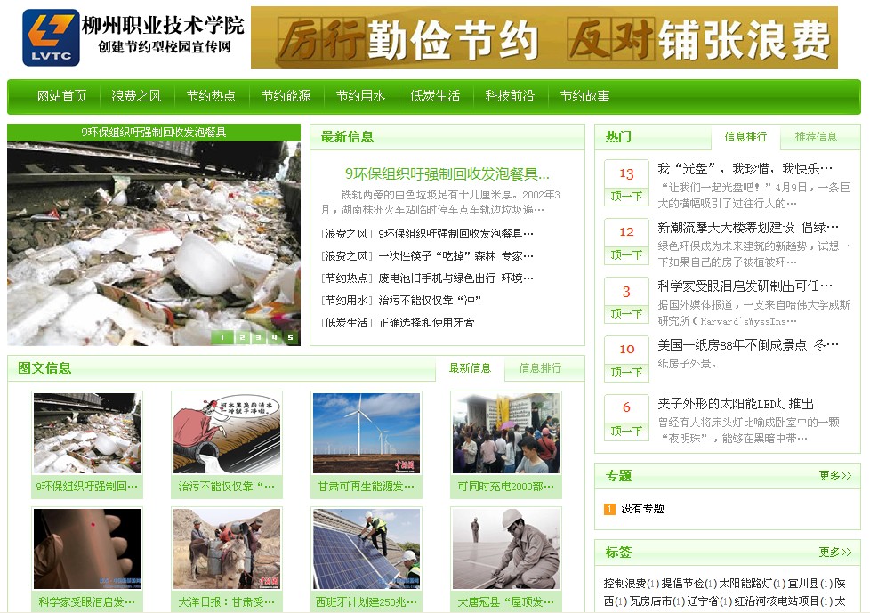 积极创建“节约型校园建设”网页,依托网络技术,利用网络资源,发挥校园网站功效,宣传政策法规,推动节能降耗工作。
