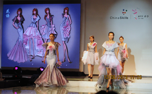 该项赛事由教育部发起,联合国务院有关部门、行业和地方共同举办的一项全国性职业教育学生竞赛活动,参赛选手多,社会影响大。各个参赛代表队纷纷拿出自身的看家本领,竞争十分激烈。我院艺术设计系2011级服装设计班学生梁苒梅、韦菲菲组成广西第1代表,艺术设计系郭琦副主任、谭宇斌老师担任指导老师。