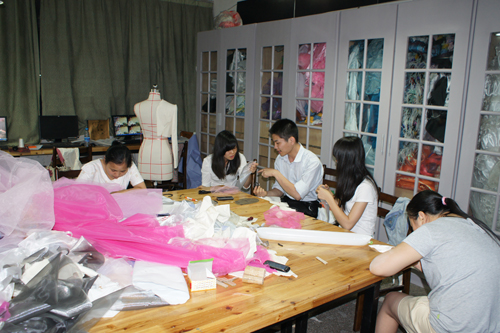 学生利用服装设计工作室开展团队合作学习准备参赛