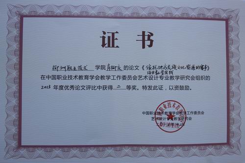 会议还对全国高职艺术设计与服装专业2013年度论文颁奖。此次参赛论文内容涵盖教学资源建设、课程建设、专业群建设等多个领域,获奖论文22篇,其中一等奖5篇,二等奖10篇,三等奖7篇。我院肖柳庆老师撰写的论文《依托地方民族文化资源的赛事项目教学实践——以柳州职业技术学院服装设计课程为例》荣获了二等奖,是此次论文大赛唯一获奖的广西院校教师。