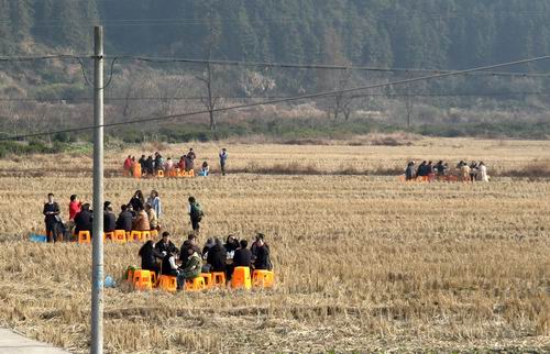 讨论会部分分为校企合作组、教改与课程建设组、资源建设组和服装教学组四组进行,议题延续了上午讨论的重点和关键词?;嵋椴扇×思燃蚱?、接地气又颇具创意的形式,将地点设在阳光普照、群山环抱的稻田中。蓝天作顶,稻杆铺地,与会代表围坐一圈,轻松畅谈高职教育教学。