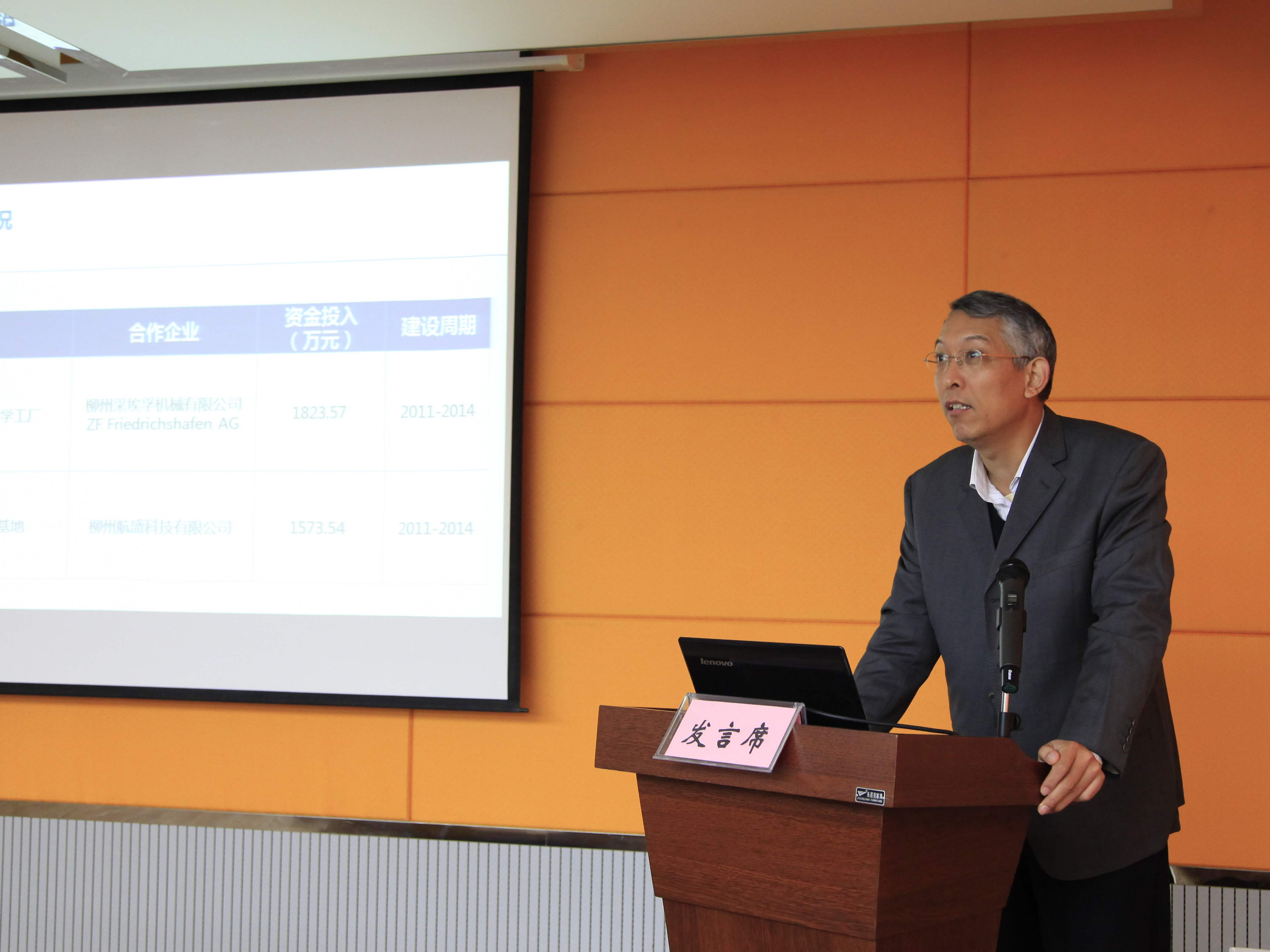 首先,我院副院长杨毅代表学院进行了“柳州市职业教育千万元设备值生产性实训基地”项目验收汇报。杨副院长主要从项目基本情况、项目完成情况及成效、项目亮点及特色、下一步建设思路四个部分阐述了我院2个“千万元”实训基地项目的建设完成情况。