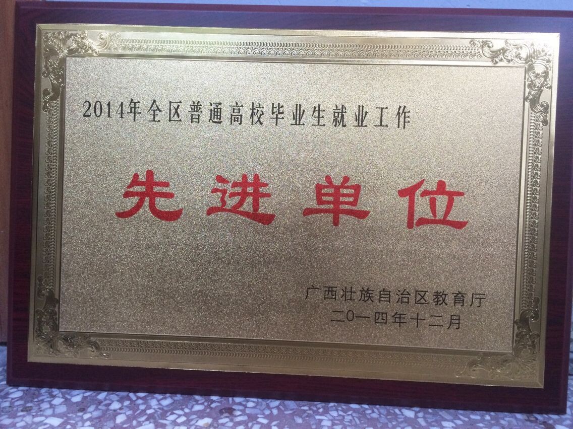 新闻网消息(通讯员 招就处 陈甜) 在12月24日举行的“2015年普通高等学校毕业生就业创业工作会议”上,我院获得“2014年度广西高校毕业生就业工作先进单位”荣誉称号,这是我院自2001年以来,连续十四年获此殊荣,也是我院长期重视学生技能培养、坚持“质量强校、特色兴?!钡陌煅Ю砟?、为生产、服务和管理一线培养高技能人才的办学定位、将两个坚持融入人才培养全过程等等系统工程相互渗透结出的丰硕成果。
