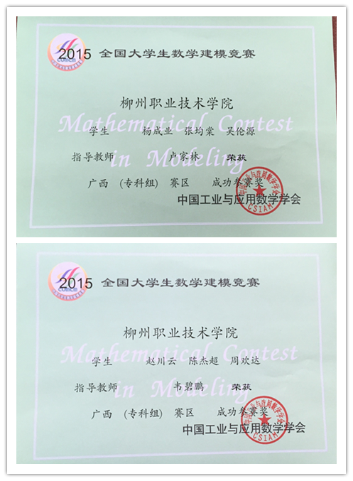 新闻网消息(通讯员/公共基础部 韦碧鹏)近日,从广西教育厅获悉,我院学子在2015年全国大学数学建模竞赛中荣获佳绩:五个参赛队中,一个队获国家二等奖兼广西赛区一等奖,两个队获广西赛区二等奖,余下两个队获成功参赛奖,我院国家奖答卷入选广西赛区优秀论文集。
