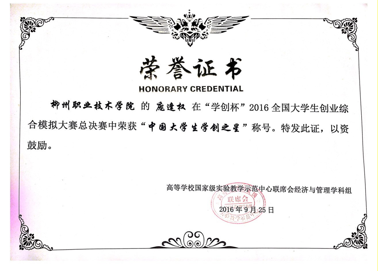 三名选手荣获“中国大学生学创之星”称号