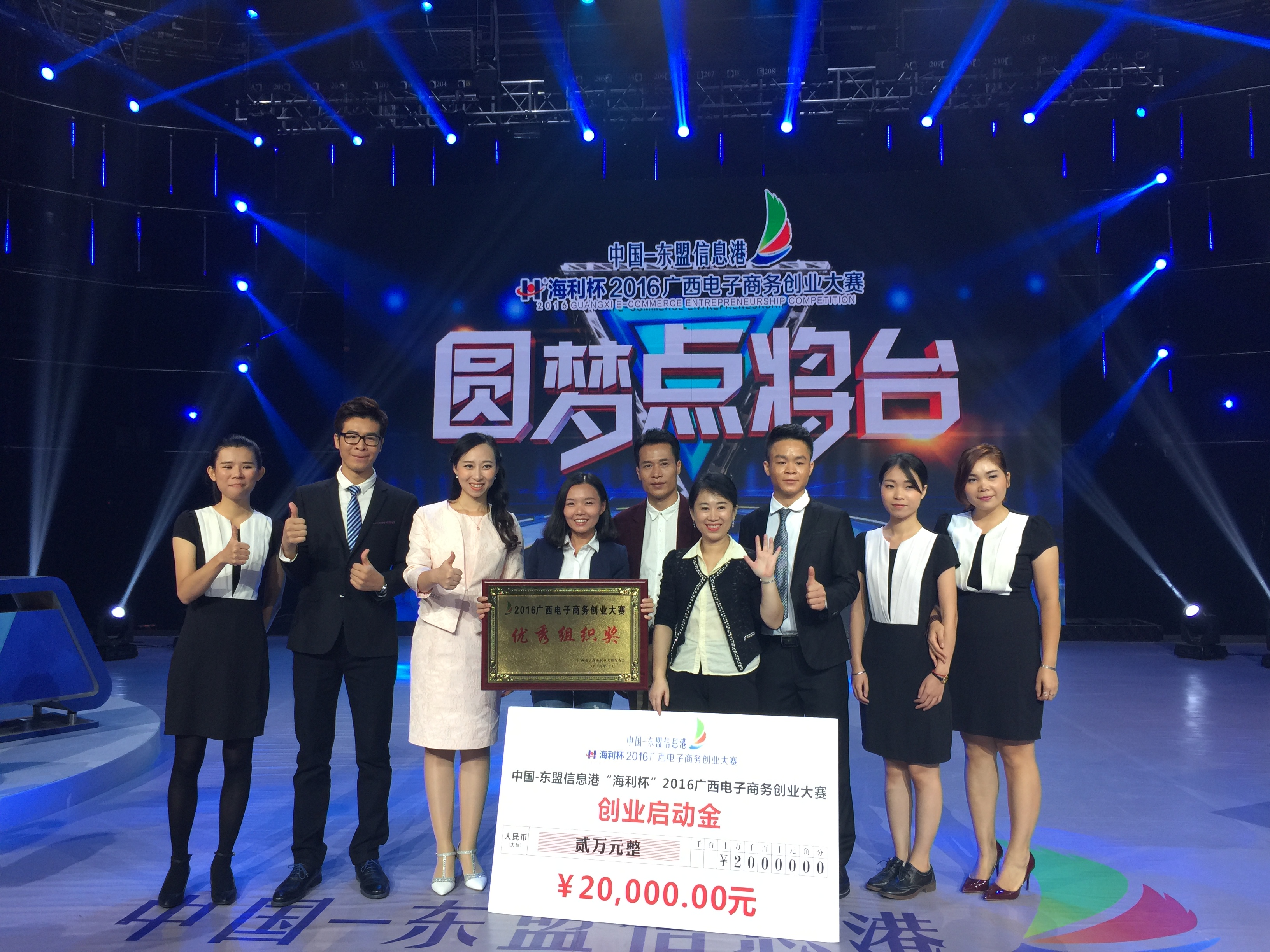 10月31日,我校学子在广西电视台举行的“圆梦点将台”——中国-东盟信息港2016广西电子商务创业大赛中捧走了一等奖。
