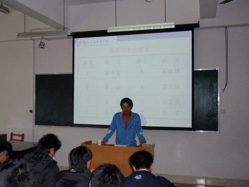 2010年3月25日下午,2009级电气自动化技术1班在竞择楼706教室举行职业道德演讲比赛,高职语文课唐建老师和辅导员骆琴老师担任嘉宾评委。比赛由学习委员梁润华主持。