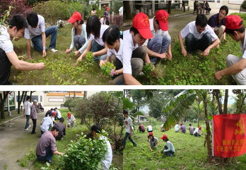2010年4月30日中午,电子电气工程系学生党支部组织学生入党积极分子到158敬老院进行慰问老人及锄草活动。