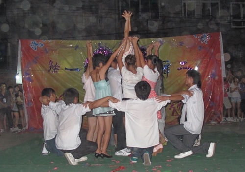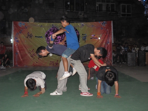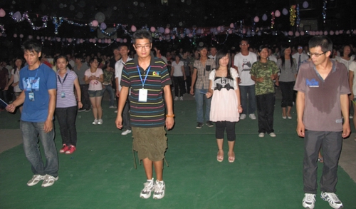 随着快乐熟悉的音乐——《兔子舞》响起,现场立即变成舞动的海洋,在场下的同学立即加入到场上的队伍,挥动着有节奏的节拍,新老生合群起舞,大家手搭肩膀编织出一个快乐而祥和的幸福圈。恰恰舞蹈让大家心情振奋;慢三步舞、民族歌曲、拉丁舞、草裙舞更是精彩不断,舞池的观众变得更加活跃起来,舞会的气氛一次次被推向了高潮。火热与恬淡融为一体,激情与高雅相伴而行,伴着柔和的晚风,在欢乐中、舞动中舞会落下帷幕。