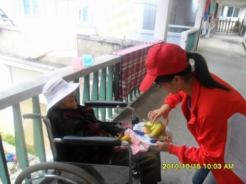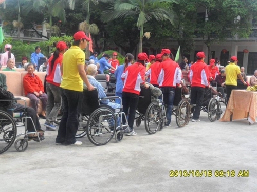 丹桂飘香,金菊怒放。在一年一度的“九九重阳节”到来之际,在这个中华民族传统的节日里,为了弘扬尊老敬老的传统美德,在我院大学生中间宣传关爱老年人的正确理念,建设精神文明校园,构建社会主义和谐社会,同时也让敬老院老人感受到社会各界对他们的关心与热爱,2010年10月15日下午,我院青年志愿者协会前往158敬老院组织了一场以“欢乐重阳,天天开心,健康长寿敬老人”为主题的重阳节敬老活动,提前为他们送上节日的慰问与祝福。敬老院领导、工作人员以及解放军医疗队伍也参加了此次活动。