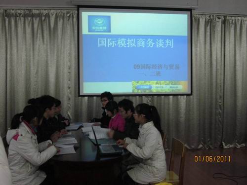 2011年1月6日,经济管理系2009级国际经济与贸易专业在德馨楼301教室举行了一场别具风采的模拟商务谈判演示赛。此次活动是在李婵老师的指导下,由两班班委承办,面向经济管理系2009级国际经济与贸易专业全体学生,旨在运用模拟的商务谈判来提高同学们的实践能力,提高同学们职业素质的培养,为以后职业生涯的成功做好铺垫。