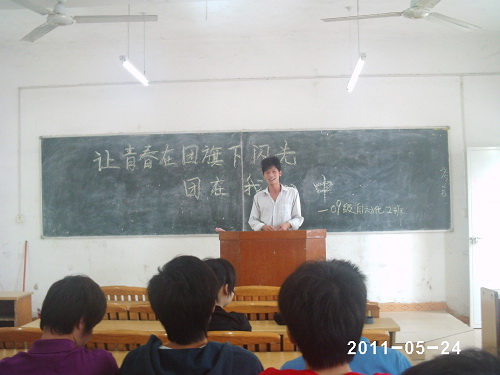 2011年5月24日上午, 为了纪念“五·四”运动,缅怀和继承“五·四”光荣传统,弘扬“爱国、进步、民主、科学”的“五·四精神”,2009自动化技术2班全体同学在德润楼103教室举行了励志向上的以“团在我心中”为主题的演讲比赛。