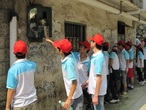 25位入党积极分子在电子电气工程系学生党员的带领下,对天湖社区居民楼,楼道的“牛皮癣”进行了清理。为保证居民良好的生活环境,为柳州市争创全国文明城市增添一份力量。