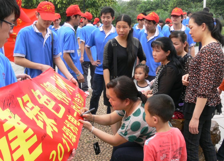 上午9点30分,活动正式开始,2011级机电一体化的全体同学跟着大部队,骑着自行车、高挂着“低碳生活,从我做起”的旗帜”从学校出发,前往市中心及雀山公园进行宣传。一路上,他们不仅向群众宣传低碳生活方面的知识,还组织开展关于低碳生活的签名活动和低碳生活等方面的问卷调查。尽管活动期间遇到过困阻,但丝毫没有影响到同学们开展宣传活动的积极性,大家都充满着活力,把活动开展得有声有色。下午14点30分,活动顺利结束,同学们欢声笑语骑车返校,并随即召开了对于本次活动的总结讨论会。