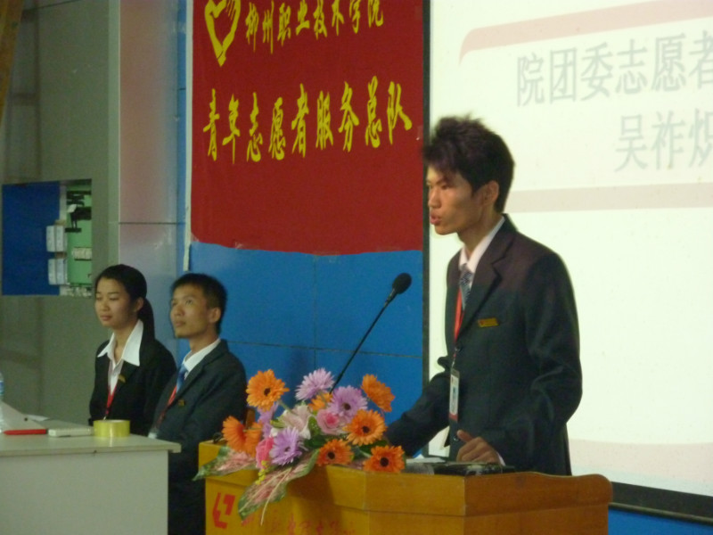 宽敞的旧阶梯教室座无虚席,工作部部长吴祚炽阐述了志愿者工作部的主要工作和性质;副部长李争对工作部的组织机构进行了解说,让新成员了解工作部的机制体系;各科室和各服务队代表对自己部门的工作进行解说,其中不乏幽默而又附有哲理的语句,还有值得学习的志愿者精神。副部长甘康宁用诙谐幽默的语言向所有成员诠释了什么是志愿者。大会的最后一项内容是新成员自由发言。短短10分钟,新成员们争先恐后上台发言,展现了新成员的热情、积极主动、上进和活泼开朗的精神面貌。 (文、图/ 院青年志愿者工作部)