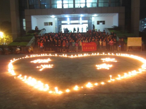 4月22日晚21时30分,汽车工程系学生120余人在竞择楼前开展为雅安祈?;疃?br> 据统计,4月20日的这次地震已造成四川雅安、成都、眉山、自贡等17个市州104个县150余万人受灾。面对无情的灾难,各界人士纷纷伸出援助之手,向地震灾区的人民发出了慰问、祝福并输送了救灾物资。作为21世纪的大学生,汽车工程系学子们对雅安地震表示高度的关注,由该系分团委、学生会提出倡议,同学自愿报名参与。此次活动的目的旨在向地震灾区人民表示关心和祝福。