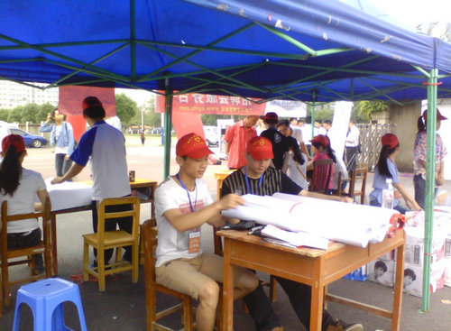 为了更好的提升广大同学的综合素质,树立正确的人生观、价值观,培养吃苦耐劳的良好品质。电子信息工程系2012级计算机信息管理(企业IT技术方向)(1)班的志愿者们在本班团支书的带领下,于2013年4月20日上午8点,前往柳州体育中心参加由八桂人才网组织的招聘会活动,协助有关人员从事志愿者工作。