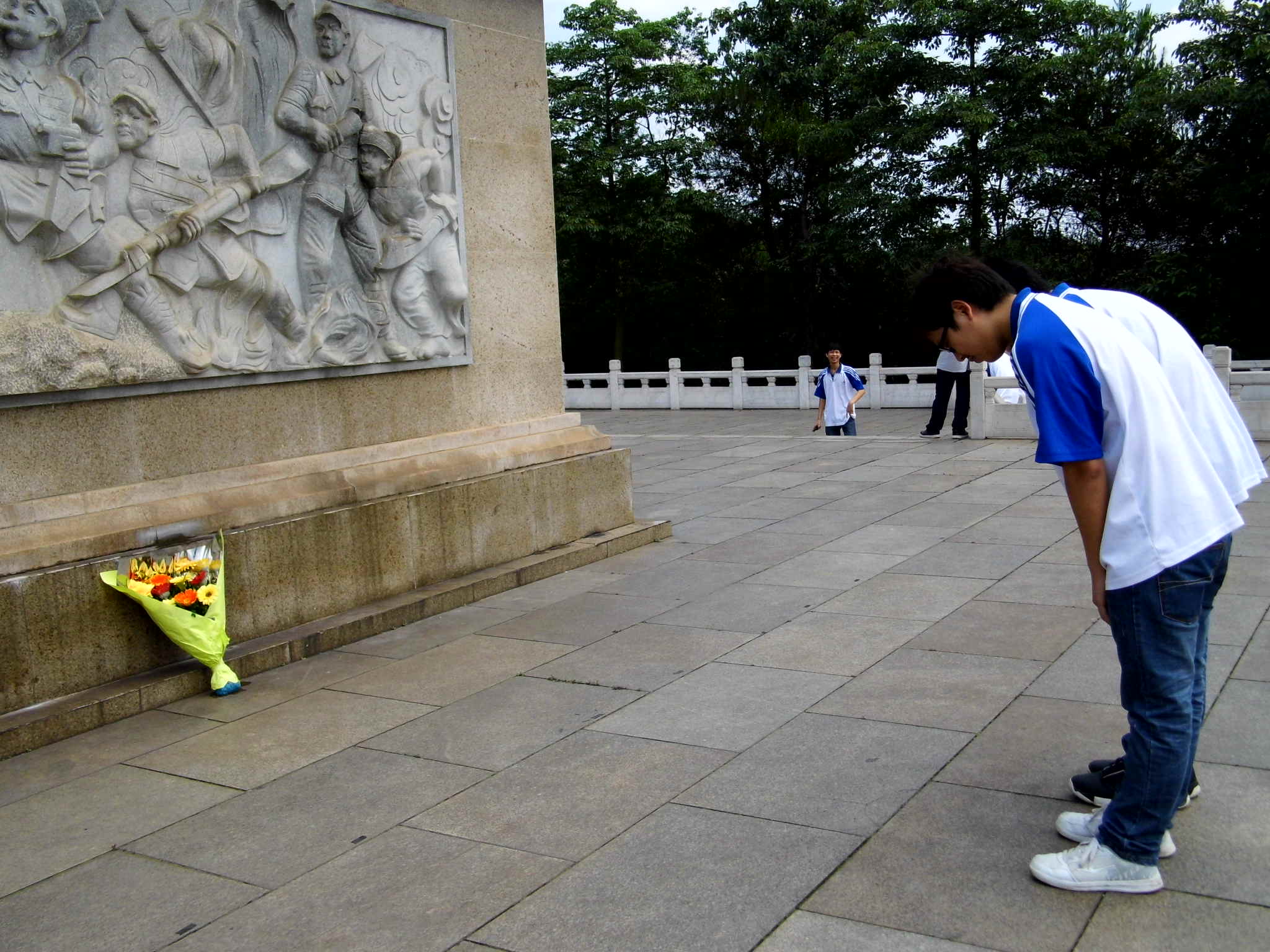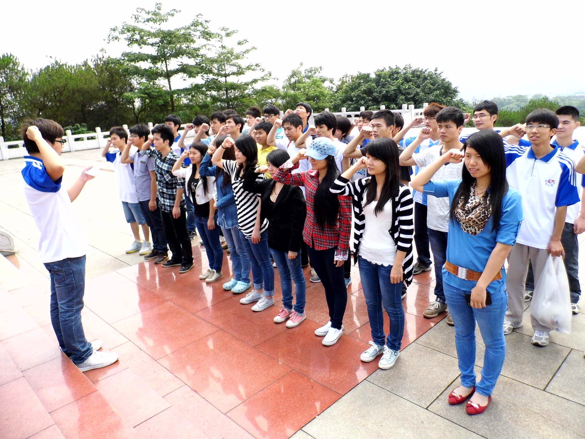 早上9点30分,在该系学生会副主席覃晓春、秘书长吴家全的组织下,同学们在学校集合完毕后带着事先制作好的纸花乘坐公共汽车抵达柳州烈士陵园,同学们心中充满对革命先烈的敬仰和缅怀,一一上前去向烈士们献上手中的纸花,以表达对烈士的崇敬及悼念,更加感觉到今天的幸福生活是先烈们用生命和鲜血换来的。主持人向同学们介绍烈士陵园的概况后,大家在烈士墓碑前庄严宣誓,纷纷立志要做一名合格的大学生,学习和弘扬革命先辈的爱国主义精神,自强不息,团结友爱。从现在做起,从身边做起,从小事做起,为祖国,为人民,做出自己的贡献。