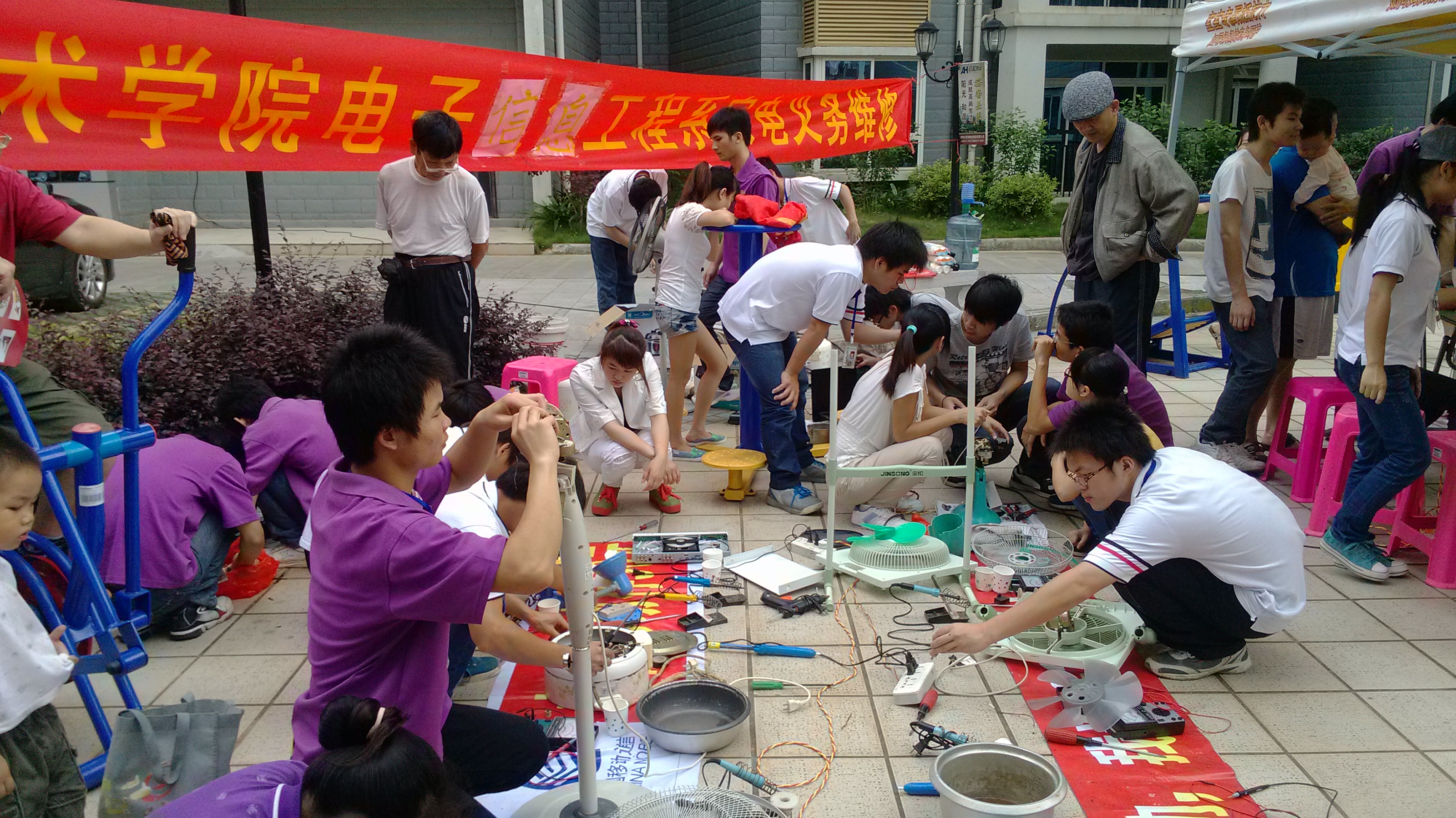 为学习习近平总书记“五四”讲话精神,展现当代青年学雷锋的良好精神风貌,增强当代大学生的服务和奉献意识,2013年5月18日,我院电子信息工程系组织学生会和家电维修部志愿服务队到柳州市民泰社区开展为期一天的义务家电维修活动,受到了市民的热烈欢迎。