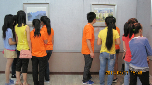 为了丰富校园文化生活,营造浓厚的校园文化氛围,充分展现中国书画艺术魅力,继承和弘扬传统的国粹文化艺术,引导学生走进高雅艺术,提高学生干部的艺术修养和审美情趣。财经与物流管理系2011级、2012级学生干部到艺术校区进行“学生干部素质拓展教育”,参观马践老师的民俗展和黄伟刚老师的水粉画展。