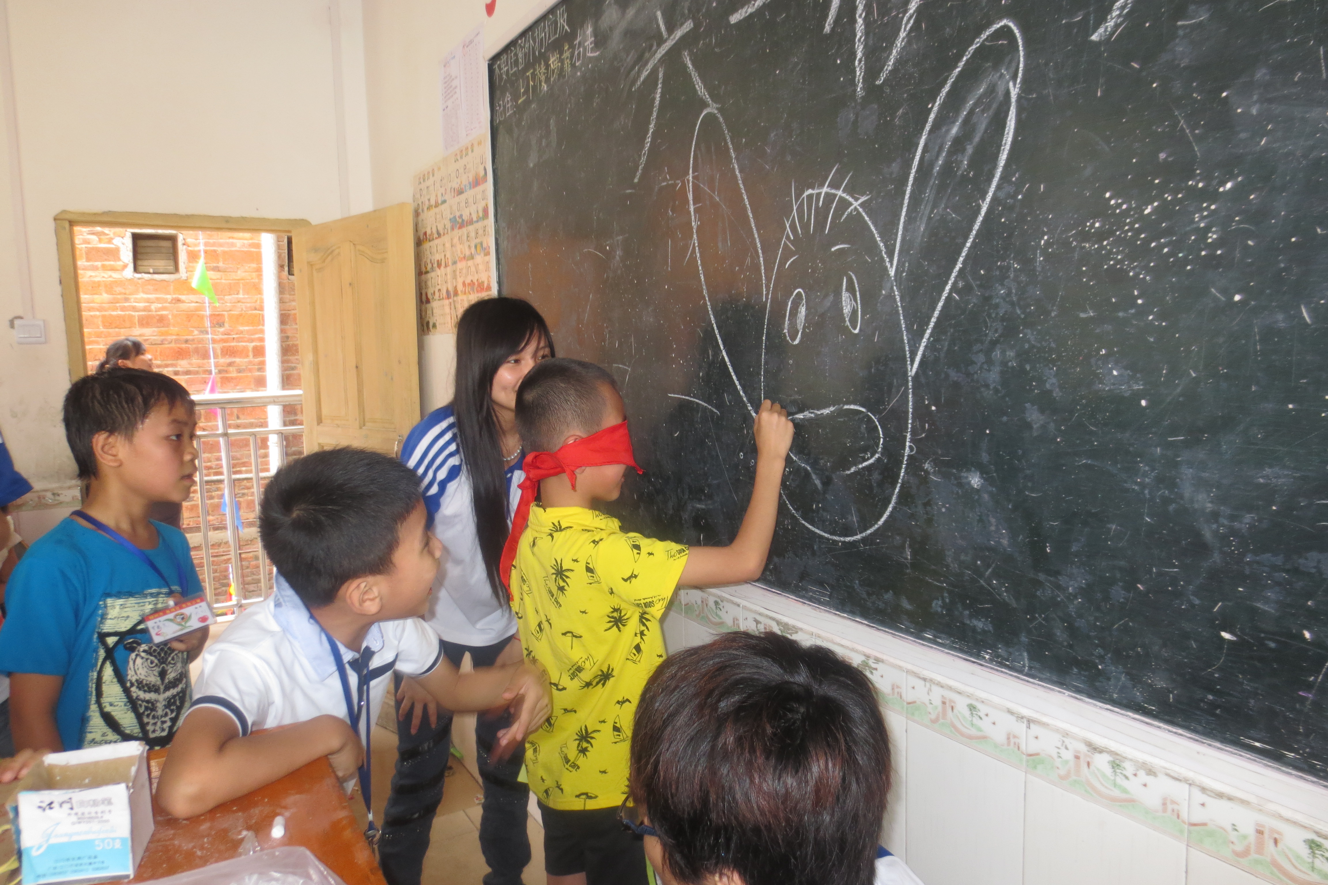 大家带着饱满的精神到达东风小学。在活动现场,大家早早准备好了活动需要的工具,分小组迅速布置好游戏场地。夹玻珠、投乒乓球、正话反做、点鼻子、盲人敲击等游戏都吸引了小朋友的热情参与,小朋友们只要参加游戏都会有糖果、笔记本作为奖励。不一会儿,小朋友们已经融入游戏当中,玩得非常开心,看到小朋友们因赢得奖品而充满喜悦的脸庞,大学生们也很高兴。其中还有互动环节,如唱歌、跳舞、剪刀石头布等,大学生与小学生纷纷参与其中,现场的热烈氛围瞬间被点燃。各种有趣的游戏最终在同学们的欢声笑语中结束。紧接着,大学演员为小学生们带来了精彩有趣的舞蹈。舞蹈幽默有趣,让在场的同学看得哈哈大笑,整个活动给每个人都留下了深刻的印象。