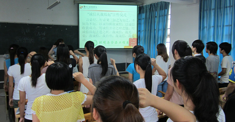 6月5日,环境与食品工程系各班级开展了“圆我中国梦,诚信伴我行”系列活动之诚信宣誓仪式,目的是为进一步强化大学生的诚信意识,引导学生树立求真务实、言行一致的诚信形象,营造“诚信待人、诚信处事、诚信学习、诚信立身”的校园氛围,向周围散发柳职院人的诚信正能量。