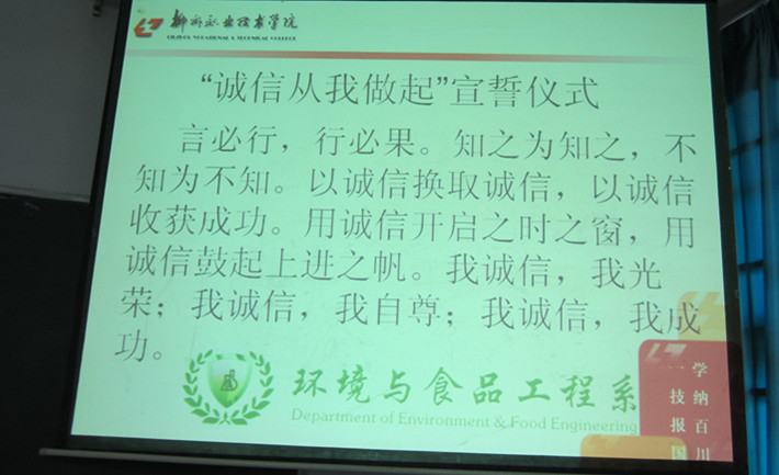 “圆我中国梦 诚信伴我行”—环境与食品工程系开展诚信宣誓活动