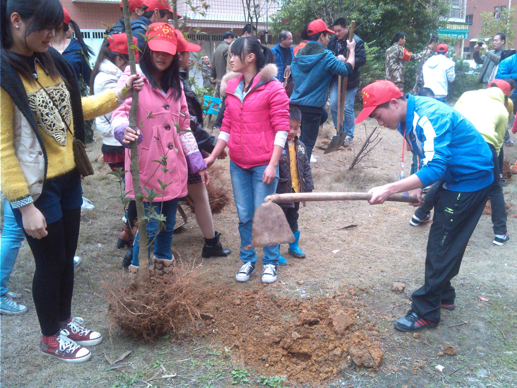 阳春三月,草木秀润。2014年3月14日上午8时,我院志愿者应柳州市鱼峰区民泰社区居委会邀请,赴社区与柳州市鱼峰区的特警队员、消防官兵一起参加植树绿化活动。
