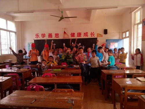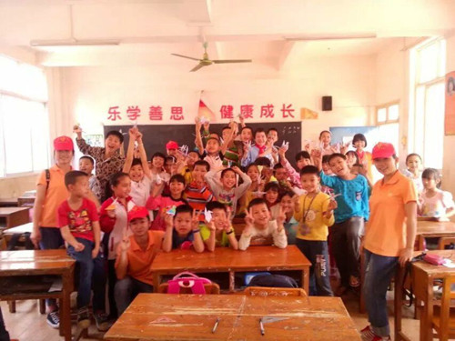 志愿者跟可爱的孩子们在一起