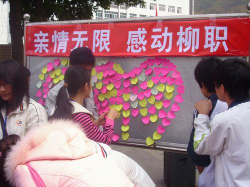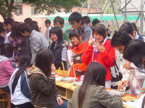 活动场面非常热烈,每一个同学可以通过移动公司的无线移动电话免费给自己远方的亲朋好友通话,带去诚挚的问候,表达最真诚的祝福。除此之外,还可以通过现场的心形的卡片记录下心愿及祝福,这一活动极大地提高了同学们的感恩意识。