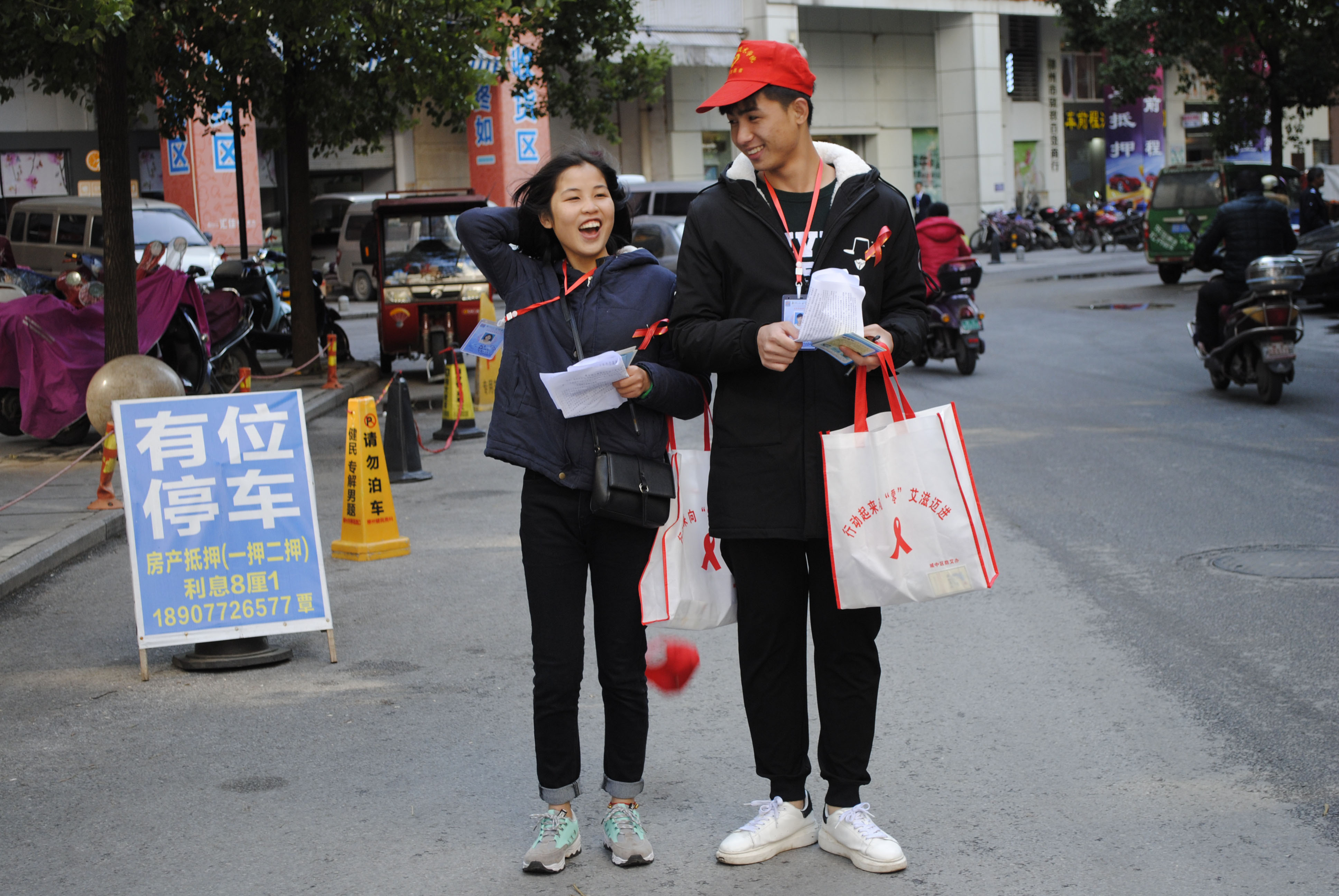 当天早上,大家先在五星地王步行街集合,参与活动人员分为两组。高校志愿者主要负责徒步宣传,向路人宣传防艾滋病的十条核心信息,发放宣传资料及宣传品;小学生志愿者在家长的陪同下在主会场义卖红丝带,最后将所得的善款全部用于慰问艾滋病病人。此外,还有来自医院的义诊团队,给市民们免费咨询和解答防艾的相关问题。最终,防艾墙签名环节将整个活动推向高潮。