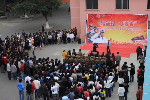 2009年12月10日,我院举行了2009年新兵入伍欢送仪式。学院党委书记朱伟才、党委副书记阳旭、院长助理李彰汉、学院武装部、学生工作处、党委宣传部及各系部领导出席此次欢送仪式。