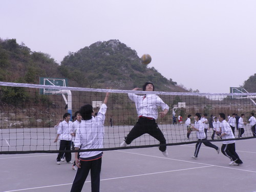 学生在进行扣球练习