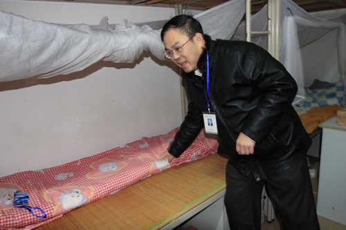 每到一处,朱书记都仔细查看学生的床上用品,当发现有些学生还没有铺垫被,便关心地询问学生铺盖是否够用,如果经济困难,可以向学院申请补助购买御寒衣被,并嘱咐随行的相关部门负责人,天气寒冷,一定要注意关心学生的御寒问题,从辅导员、到各系相关领导,再到学生工作处,要建立畅通的渠道,及时了解学生防寒情况,特别是对一些家庭经济困难,但又不好意思开口申请援助的学生,一定要主动去关心他们,保证每一个学生能安心学习和考试。临走时还交代宿舍里的学生,防寒也要注意多开门窗,使空气流通,预防疾病的发生。