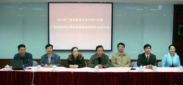 2010年1月8日至9日,我院招生就业处领导及相关人员参加了广西高职高专招生工作研讨会暨广西高校招生研究会高职高专招生分会2009年年会。全区共有30所高职高专院校参加了此次年会。