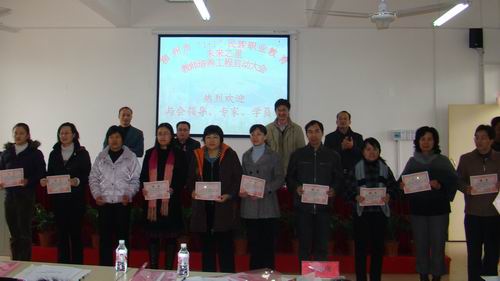 2009年12月31日,在柳城县职教中心阶梯教室隆重举行了柳州市“‘1+1’民族职业教育未来之星”教师培养工程启动大会。市教育局领导、教科所领导、六县教育局及职教中心领导以及导师、培养对象出席了会议。我院教师韦小波、佘莉、韦林、张海峰、唐铁骊、莫徽忠、郭琦作为培养导师出席了会议。