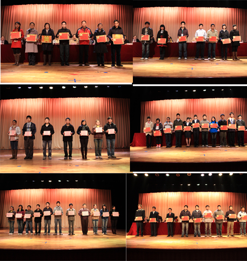 大会还进行了2008-2009年学年度学生评优表彰。张翔副院长宣读了2008-2009年学年度优秀学生、先进班级及四佳素质学生名单,并进行颁奖。张院长希望获奖学生要戒骄戒躁,不断努力,争取获得更好的成绩。希望广大学子继续发扬奋力拼搏的精神,向优秀学生学习,不断超越自我。