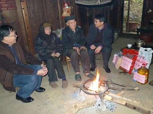 随后,林副院长与我院驻村指导员、乡政府干部、村干部,围着火盆,进行热烈交流。驻村指导员首先汇报了近一年来的工作情况,乡政府、驻点村干部对指导员一年的工作给与了中肯的评价,他们对学院多年来的关心和支持表示感谢,并向林副院长介绍了洞头乡和驻点村的一些基本情况,坚信在各级党和政府的领导下,在学院等社会各界的指导、关心、支持下,依靠科技,勤劳创业,通过不懈努力,小康生活一定能早日实现。林副院长结合学院办学优势、结合当地实际,对新农村经济文化建设以及农民脱贫致富提出了许多意见建议,表示双方可以在农村劳动力培训、教育等方面开展合作,提高农民工的文化素质和劳动技能,并鼓励他们因地制宜,自力更生,不等不靠,充分发挥自然优势,依靠农业科技,培养村级主导产业,勤劳致富,科技致富,实现农民增产增收,推动社会主义新农村建设更上一个新的台阶。林副院长说,我院已经派了三届优秀的指导员下来学习锻炼,他们成为了学院与驻点乡村联系的纽带,我们还要继续派优秀的指导员到驻点村来,为社会主义新农村指导员和驻点村开展工作给予大力支持。
