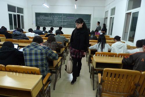 考试期间,党委宣传部部长左妮红及电视台的各位老师也都到现场视察考试情况。左部长的到来,给了同学们极大的鼓舞,也体现了校园电视台对此次招聘的高度重视。左部长在每个考点都对同学们做了相应的指导。左部长指出,考试时要放松,以平常心去对待,这样可以充分发挥自己的潜能,注意细节、做到灵活又有创新力。