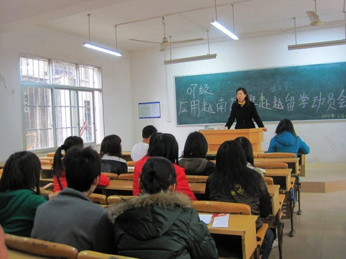 这次留学合作得到了学院各级领导的重视和关心。3月4日,在学生出发前一周,经济管理系副主任董绿英对2007级全体赴越南留学同学进行了留学动员,希望同学们在国外团结互助,认真听课,遵守越方规定。相信这23名学生会珍惜这个机会,勤奋学习,为校争光,并成为“友好使者”?。ㄎ?张云霞、李晓雯 图/赵雪雷)