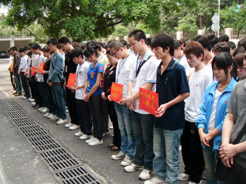 2010年4月21日下午,由学院团委组织的哀悼活动和“抗震救灾,我们在行动”特殊团费缴纳仪式在办公楼前举行。学院团委书记杨琳、各系团总支书记、各系团员青年代表参加仪式。